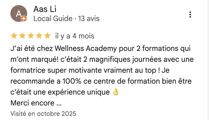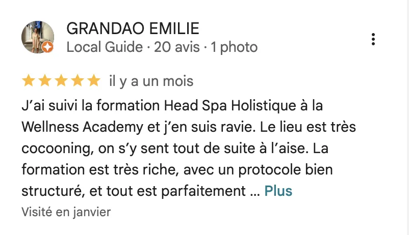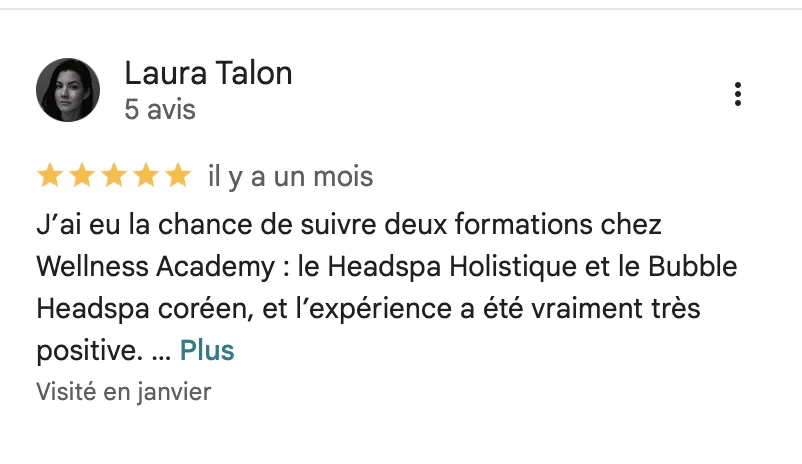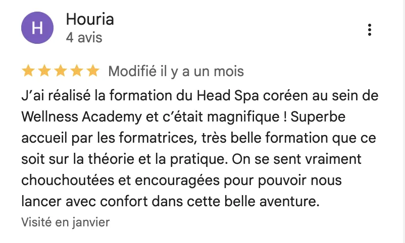 Parmi ces découvertes, le soin Head Spa Holistique a été une véritable révélation. En l’associant à un diagnostic capillaire personnalisé, j’ai pu obtenir des résultats optimaux et transformer l’expérience capillaire de mes clientes. J’ai eu le privilège d’accompagner des centaines de femmes dans le lancement de leur propre Head Spa et leur activité capillaire, leur permettant ainsi de trouver un équilibre entre vie de famille et indépendance financière.